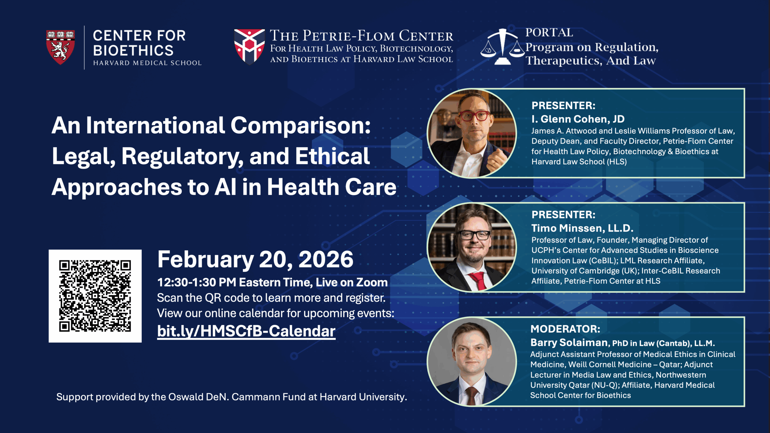 In this webinar, speakers will describe the international legal, regulatory, and ethical frameworks governing applications of AI in health care. They will compare approaches, discussing the opportunities and challenges, as well as the need for transparency, accountability, and guiding ethical principles in developing AI systems in health care. Panelists This event is organized by the…