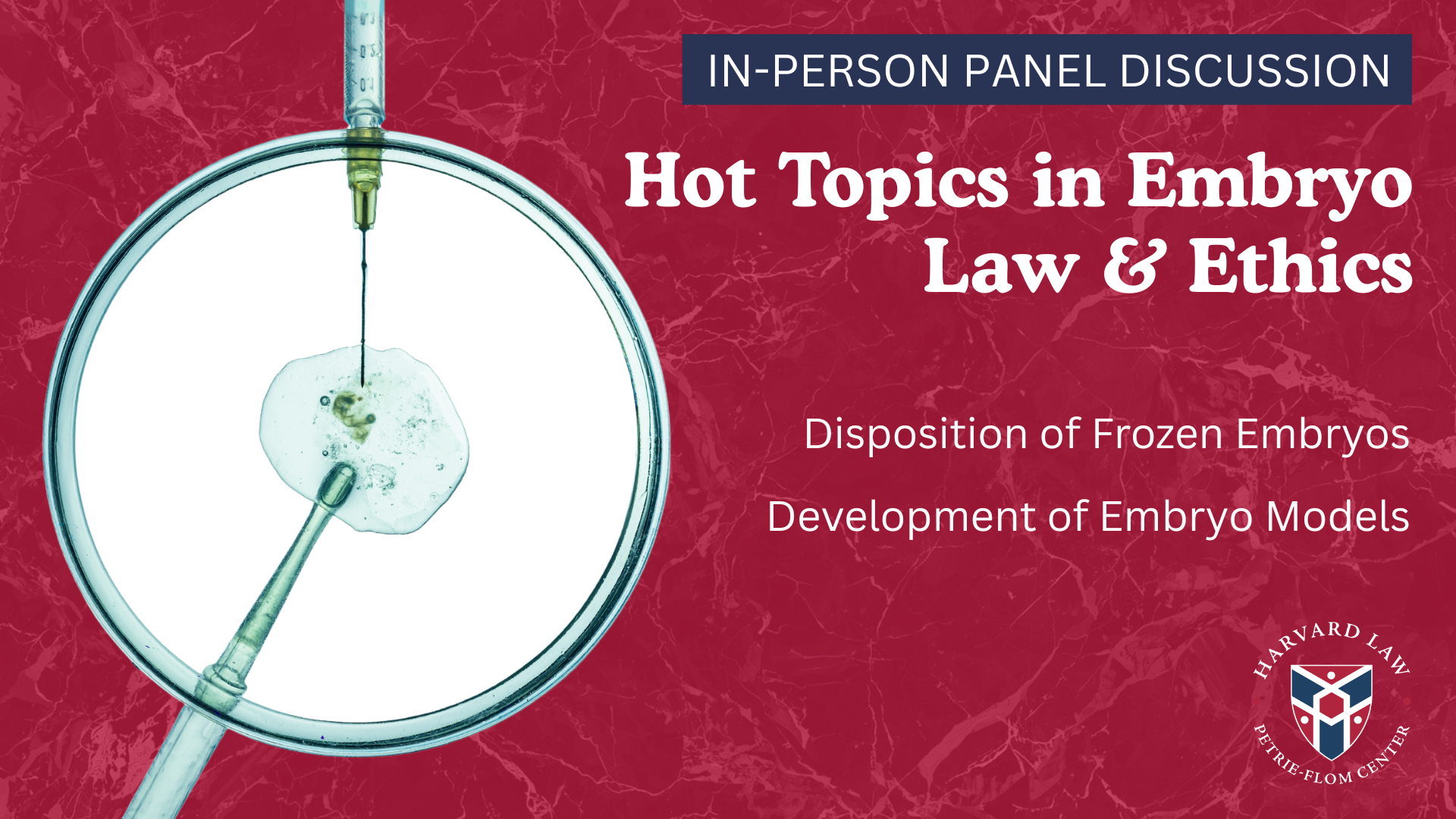 This public event will discuss legal and ethical issues related to disposition of cryopreserved embryos and the development of lab-grown “embryo models” which are created from pluripotent stem cells and mimic early human embryo development.